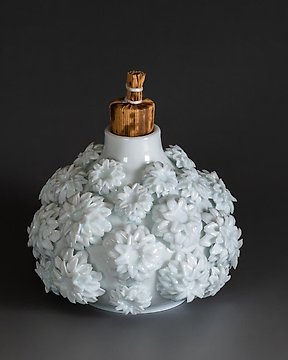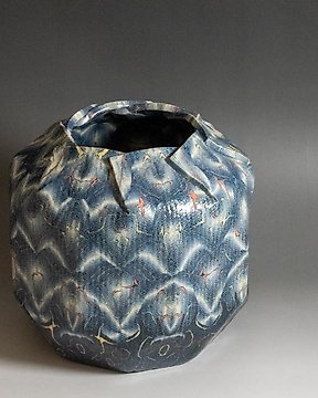 Vaso Modern Mino Ware — Linee e Petali - Ceramica - Masayuki Azuma 東正之 (b.1960) - Giappone - Periodo Heisei (1989-presente)