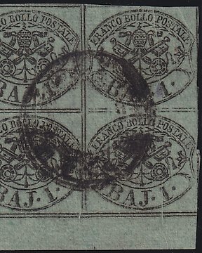 Antichi Stati italiani - Stato Pontificio 1852 - Interessante iunsieme del 1 baj - Sassone 2, 2a.