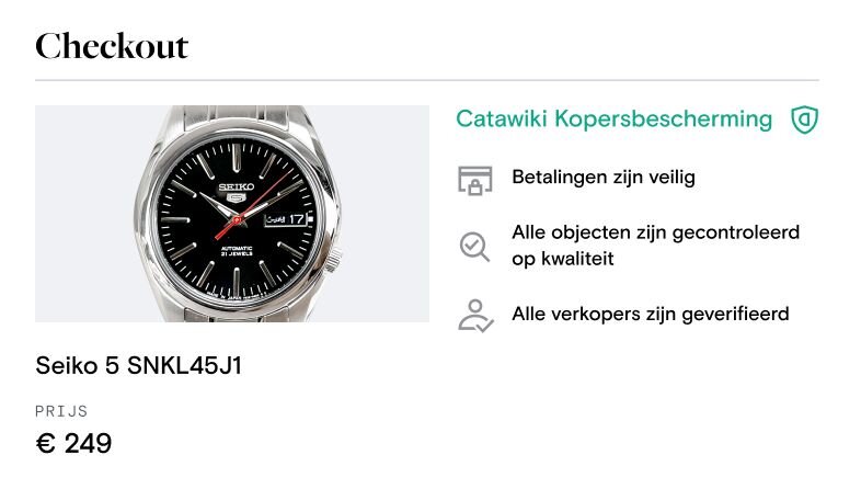 Maak het object jouw eigendom. Betaal via ons veilige betalingssysteem. Je geld wordt veilig bewaard totdat het object bij jou thuis is afgeleverd.