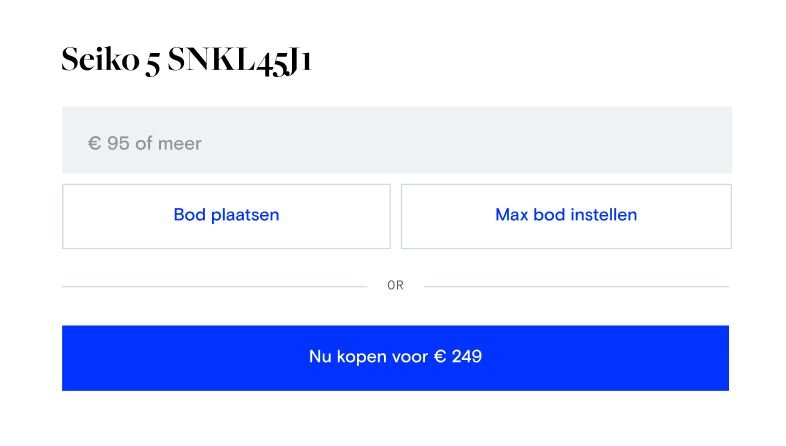 Klik op de 'Nu kopen'-knop tussen de biedopties om het object direct te kopen. Wees er snel bij! – Deze optie verdwijnt 24 uur voordat de veiling sluit.