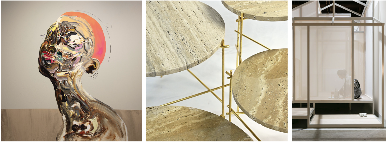 Vijfendertig ontwerpers worden gepresenteerd in de speciale veiling in samenwerking met het Lake Como Design Festival. (Van links naar rechts): Harmony by Saville (BE), Instead by Franck Grossel (FR), Approximately Baroque by Bhulls (IT).