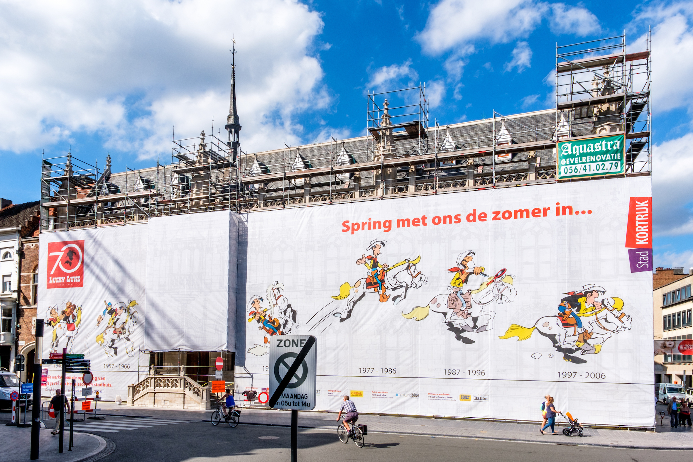Fans van stripfiguur Lucky Luke kunnen deze week hun slag slaan bij online veilinghuis Catawiki. Daar wordt namelijk het enorme Lucky Luke werfdoek geveild dat eerder dit jaar tijdens een renovatie aan het historische stadhuis van Kortrijk hing. Het enorme spandoek met diverse afbeeldingen van Lucky Luke meet maar liefst 46 op 12 meter. Het spandoek was vooral een eerbetoon aan de verjaardag van Lucky Luke die dit jaar precies 70 jaar is geworden. Daarnaast werd tekenaar Morris (Maurice De Bevere) op 1 december 1923 in Kortrijk geboren. De stad heeft dus een grote affiniteit met de tekenaar. Veilinghuis Catawiki verwacht veel belangstelling voor het werfdoek, ''Lukcy Luke is nog altijd 1 van de meest populaire stripfiguren in Europa. Het doek is om verschillende redenen uniek en zou bijvoorbeeld heel interessant kunnen zijn als eyecatcher op 1 van de grote stripbeurzen in Belgie of Frankrijk''. De opbrengst van de veiling gaat naar 2 goede doelen: vzw Boothuis en Radio respect. Beide Kortrijkse vzw's zetten zich in voor maatschappelijk kwetsbare jongeren.