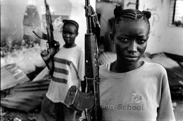 A: Er zijn veel foto’s waar ik trots op ben, maar op de foto Ganta, June 2003 ben ik misschien wel het meest trots. De foto toont twee kindsoldaten met geweren in hun armen. De jonge meisjes zien er gevaarlijk en tegelijkertijd kwetsbaar uit. Deze tegenstelling maakt de foto zo krachtig. Dit ene beeld vertelt zoveel over oorlog.