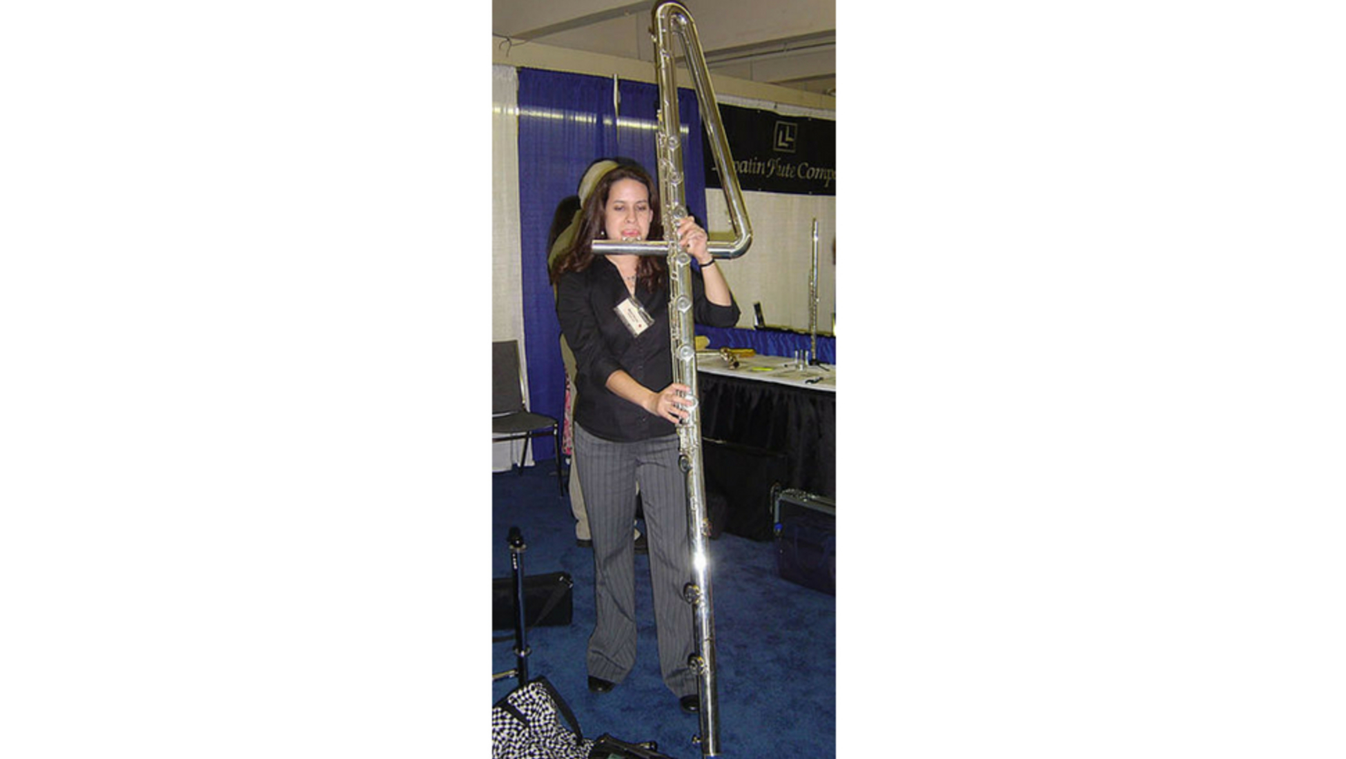 De fluit doet denken aan zachte sopraan geluiden met een zilverkleurige afwerking, maar wist je dat er meer en grotere leden tot de familie van de fluit behoren? Het volledige bereik van een piano kan worden gedekt door fluiten variërend van de piccolo tot de dubbele contrabas fluit. Dit 2,5 meter lang monster bestaat uit 5,5 meter buis en klinkt vergelijkbaar als een misthoorn en is super zeldzaam. Er zijn slechts 4 exemplaren in de hele wereld!