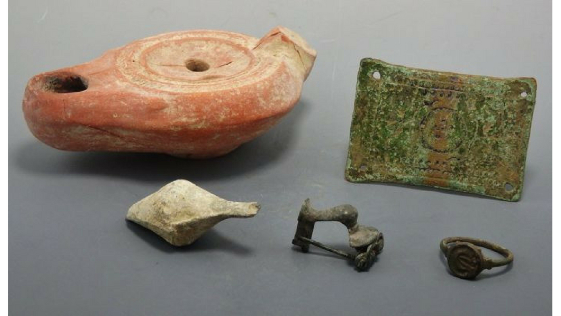 Een kleine verzameling van oude bodemvondsten in onze Archeologie en natuurlijke geschiedenisveiling: Een Romeinse olielamp, een bronzen ring, een broche, een decoratief sierstuk in brons en een katapult. Als je dit koopt voor een zeer interessante prijs, bezit je onmiddellijk een begin van een collectie die plezier en kennis aan je leven geeft. Dit kavel werd verkocht voor slechts 55 euro (kale prijs zonder kosten). Echt een goede kans om echte stukken te kopen van oude collecties tegen kosten die lager liggen dan de gemiddelde prijs van museumexemplaren.