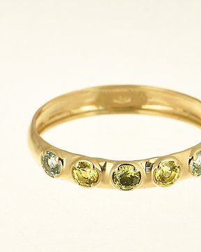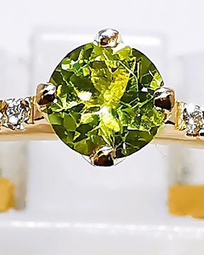 Zonder minimumprijs - Ring - 14 karaat Geel goud - 0.45ct. tw. Olivijn - Diamant