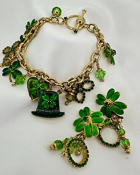 Other brand - Lunch bij het Ritz – Vintage Demi-Parure – Charm Armband en Oorbellen – Geluk Shamrock - Parure