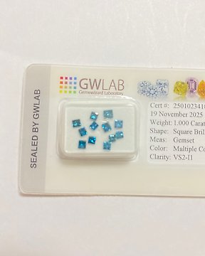 Zonder minimumprijs - 12 pcs Diamant (Kleurbehandeld) - 1.00 ct - Carré Blauw, Groen - VS2, P1 - Gemewizard Gemological Laboratory (GWLab)