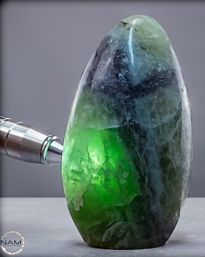 424 g fantastisk UFO calcitt på fluoritt fra Fujian, Kina Prøve - Høyde: 4.6 cm - Bredde: 17.5 cm- 424 g