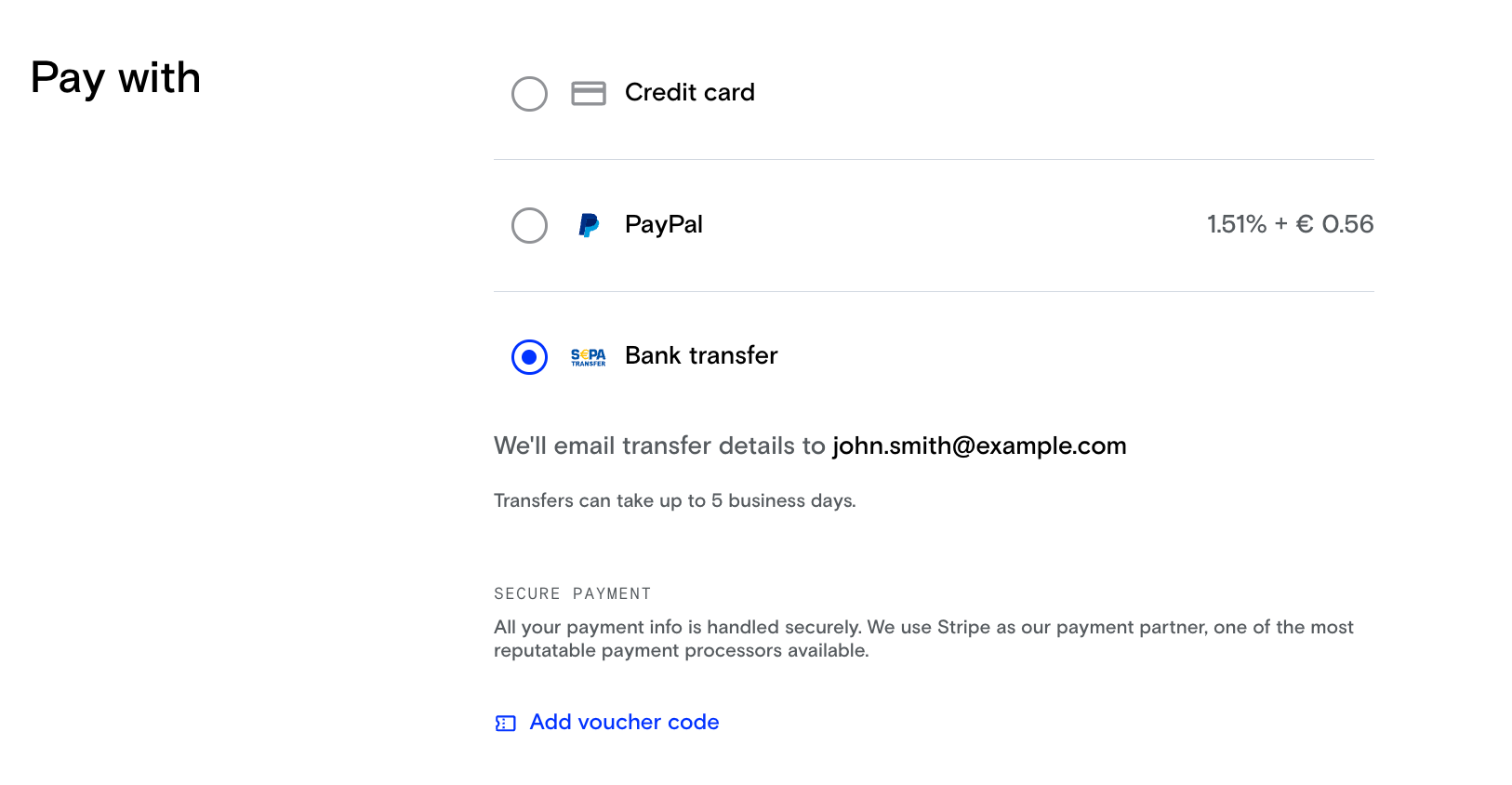 Wszystkie przelewy bankowe są przetwarzane przez Stripe, naszego zaufanego partnera ds. płatności i jednego z najbezpieczniejszych i najbardziej renomowanych dostawców płatności. Więcej informacji na ten temat znajdziesz w naszym artykule o tym jak zapłacić za swój przedmiot.