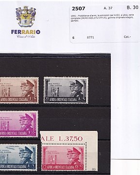 Włoska Afryka Wschodnia 1941 - Fratellanza d'Armi emisje dla A.O.I. S.8 Cała seria MNH** SPL+LIBIA S.45 8 wartości SPL F.to - Sassone S.7+S-45