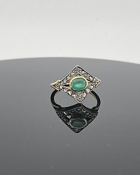 Bez ceny minimalnej - Pierścionek - 9 kr Żółte złoto, Srebro Szmaragd - Szmaragd