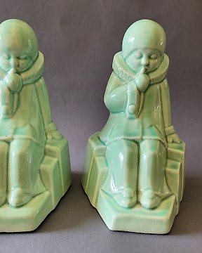 Podpórki do książek - Ciemne, polerowane drewno i bakelit - Stylizowane ptaki
