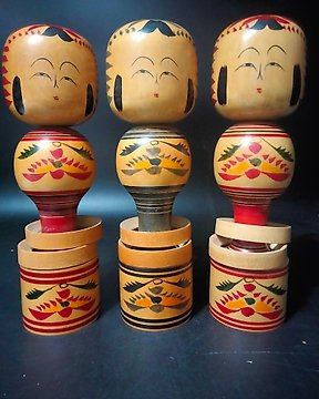 Nagao Masayoshi - Statuetka, Een prachte trio kokeshi , Zeer zeldzame Vintage traditionele Tougatta stijl (vokskunst) - 25 cm - Drewno - 1960