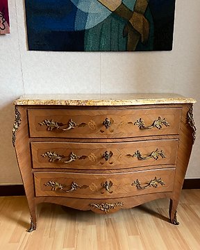 Cómoda - Madeira, Bronze, Mármore - Cómoda em estilo boulle com detalhes e entalhes em bronze e madeira.