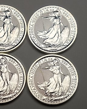 Reino Unido. 50 Pence Lot of 4 x coins - 2025 Britannia - 4 x 1/4 oz 999 Silver (Sem preço de reserva)