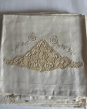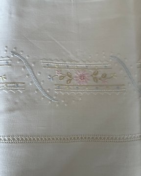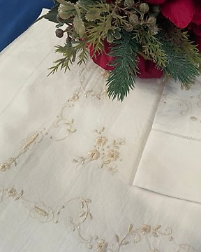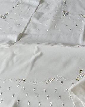 Set Lenzuola ricamate in puro cotone percalle Ricamo Punto pieno Farfalle - Cearceaf de pat - 285 cm - 265 cm