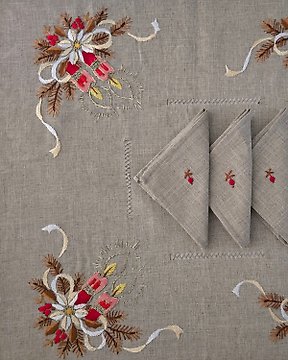 Elegante Tovaglia Natalizia ricamata a mano su misto lino 12 posti NO TOVAGLIOLI tablecloth - Față de masă - 270 cm - 175 cm