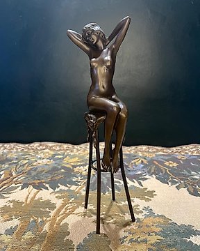 Pierre Collinet - Sculptură, Dansende vrouw met wijndruif guirlande - 43 cm - Bronz, Marmură