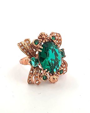 Fără preț de rezervă - Inel - 9 kt. Aur roz, Argint Smarald - Diamant