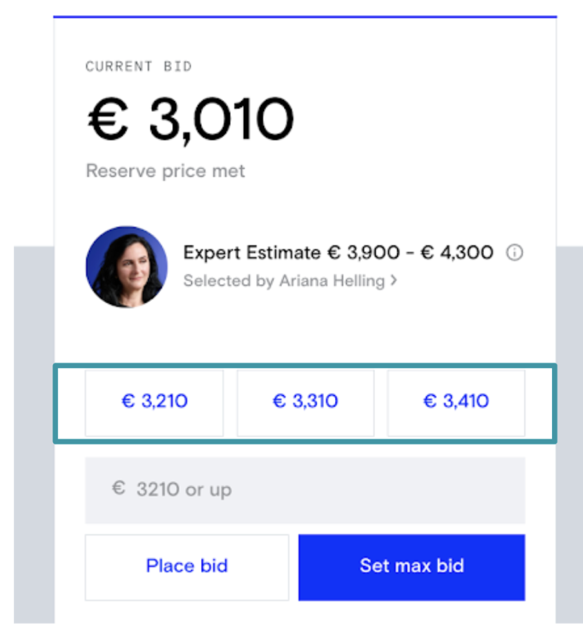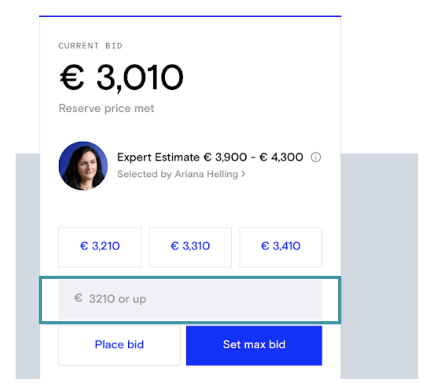 Med ett vanligt bud kan du anpassa det belopp du vill bjuda efter vad som fungerar för dig. Ange bara önskat belopp i det grå budgivningsfältet: