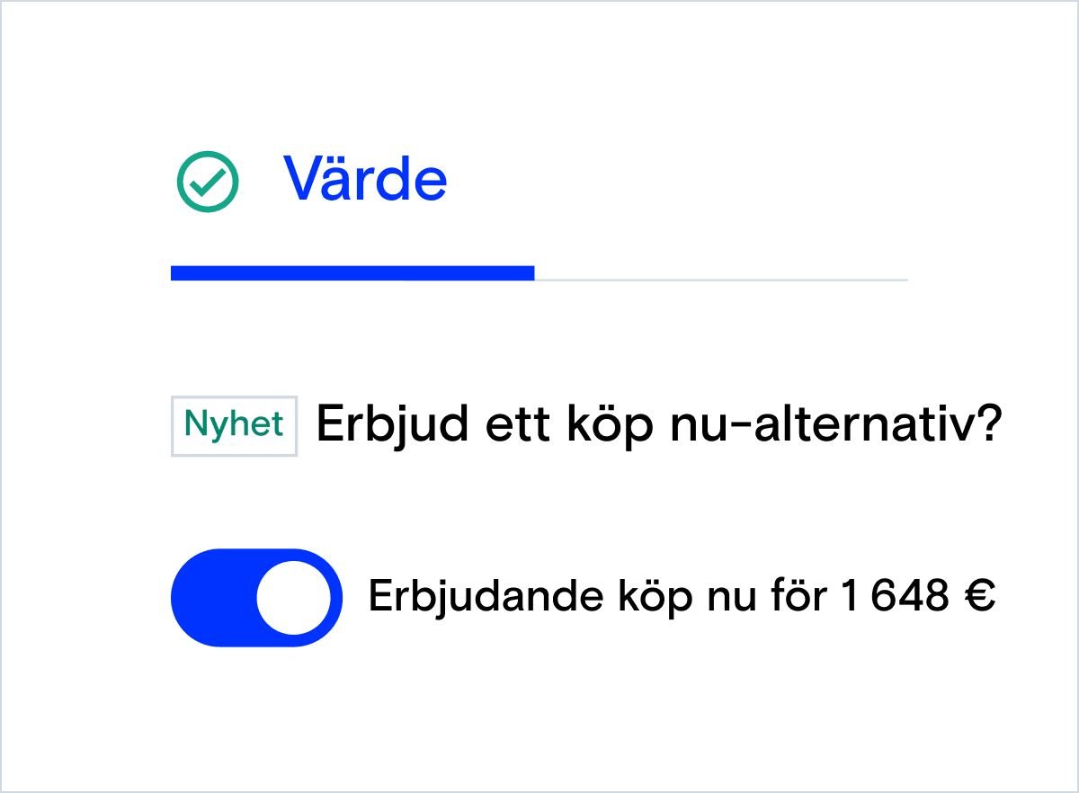 - Under objektinlämningsprocessen har du valet att aktivera Köp Nu