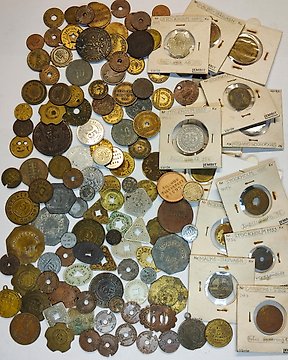 Sverige, Danmark. A lot of unsorted old Nordic Tokens - Transport, utilities and others. (Utan reservationspris)