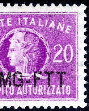 Triest - zon A - Flygpost, 50 lire med modifierad sovr. nr 22A, tydligt stämplat.