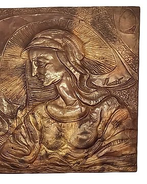 Relief, Figuren rond een vuur - 36 cm - Trä - 1900