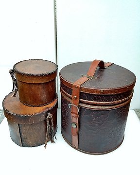 Unsigned - Hatt (3) - Läder, Trä, Textil