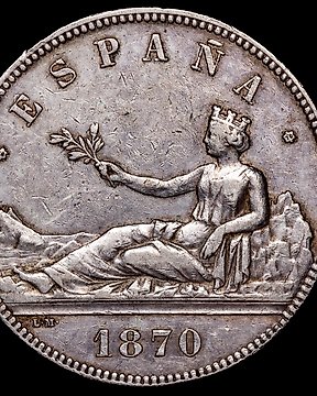 Spanien. 5 Pesetas 1870-Gobierno Provisional (Utan reservationspris)