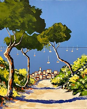 Jiel - Petit sentier ensoleillé en bord de Méditerranée, menant au village.