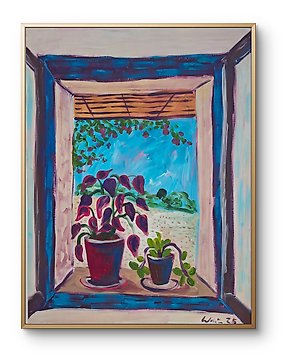 Kirsty Wain - View from the Studio: Potted Plants & Mediterranean Sky - NO Reserve