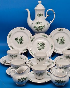 Seltmann Weiden – Kaffeeservice „Wien“ – Qualitäts-Porzellan, grünes Rosendekor, vergoldete Akzente - 咖啡套装 - 瓷