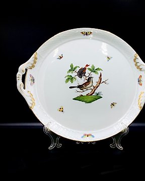 Herend - Large Round Serving Platter with Handles (31,5 cm) - "Rothschild Bird" Pattern - 大盘子 - 手工绘制瓷器