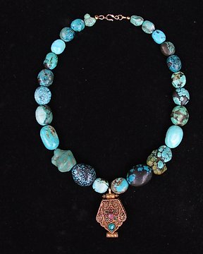 24K镀金项链与绿松石 - 西藏 - 20世纪下半叶