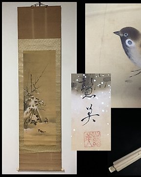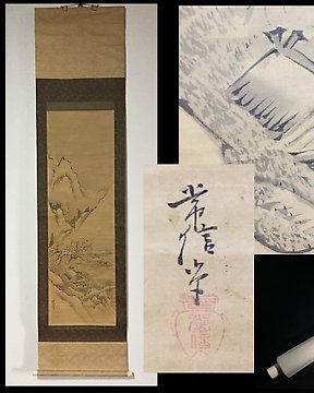 Landscape / Japanese Vintage Hanging Scroll KAKEJIKU / Silk / Hand Painted - Signed 狩野常信 Kano Tsunenobu - 日本 - Edo Period (1600-1868) (没有保留价)