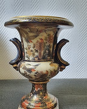 雕像 - Showa Retro Double-Pawed Maneki Neko / “Oku-man-ryo” / Ceramic Money Bank / Height approx. 33cm - 陶瓷