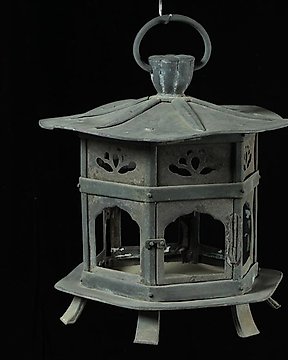 古董日式六角青铜悬挂灯,带有花卉镂空 - 黄铜色 - 日本 - 1800-1950