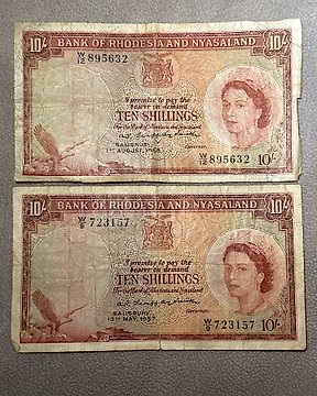 罗得西亚和尼亚萨兰德. - 2 x 10 Shillings 1957-58 - Pick 20a (没有保留价)
