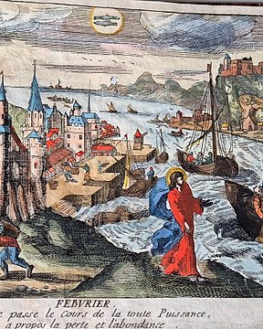 Anoniem - 17e eeuws 'kalender' boekje, met 12 handgekleurde gravures naar Hans Bol & Adriaen Collaert - 1650