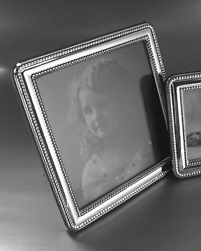 相框 - 两款非常优雅的方形照片框,双层珍珠边饰,外尺寸为8x8厘米和12x12.6厘米。
