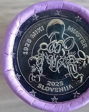 斯洛文尼亚. 2 Euro 2025 "Miki Muster" (25 coins) in roll (没有保留价)