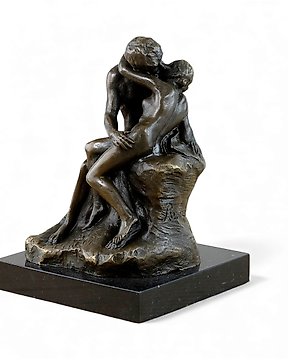 Auguste Rodin (1840-1917) - after - 雕塑, The Kiss - 14 cm - 黄铜色, 大理石