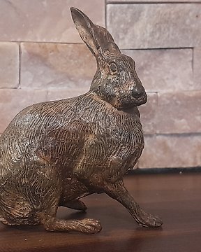 Pierre Chenet (XX-XXI) - 雕塑, Le Lièvre a l'arret - 10.5 cm - 黄铜色