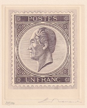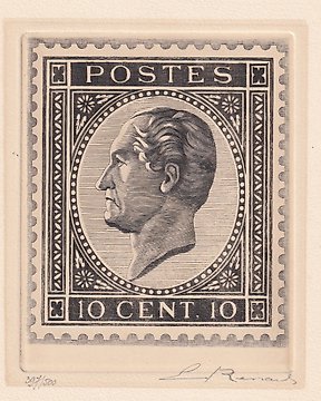 比利时 1965 - 一幅由Emile Renard创作的‘蚀刻’版画,题为‘Un Franc Leopold I’,稀有! - uitgifte 1965-1966 - genummerd en gesigneerd