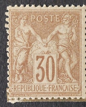 法国 1876 - Sage,I型,N sous B,30 C,浅棕色 - Yvert 69