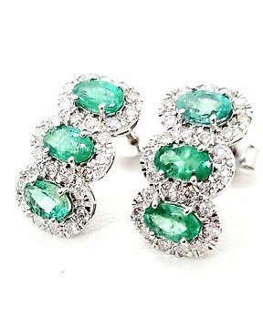 耳环 - 18K包金 白金 祖母绿 - 钻石