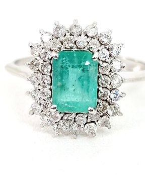 戒指 - 18K包金 白金 祖母绿 - 钻石