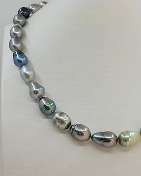 项链 银 珍珠 - Tahiti Rainbow Ø 10x13MM